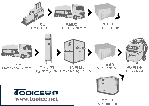 干冰清洗的優(yōu)勢: 1、清洗效果好:干冰清洗較手工清洗、化學清洗,玻璃微珠清洗效果要好、時間要短。與噴砂清洗比較,沒有二次清洗和模具磨損問題。 2、經(jīng)濟效益明顯:干冰清洗較傳統(tǒng)的化學清洗、玻璃微珠噴砂清洗等方法,成本下降30-50%左右。據(jù)廠家不完全統(tǒng)計,單臺清洗機在正常清洗頻率(清洗模具量平均值為每周二天、耗干冰100-200kg)情況下,年節(jié)約清洗成本15-30萬元。 3、可在線清洗:可使模具在不拆卸的狀態(tài)下進行直接噴射清洗。這一點在熱芯盒模具清洗時尤其突出,節(jié)省了模具降溫、拆卸、安裝、加熱等環(huán)節(jié)和時間,提高工作效率和大大簡化模具清洗工作程序。同時還節(jié)省了能源。 4、縫隙和隱蔽處清洗:對模具的排氣孔(塞)和局部凸凹變化復雜、活塊、捌角等處,有無可替代的效果。干冰清洗對φ0.7mm以上排氣單孔(孔深50以上)可直接洗透。 5、對模具表面無磨損:與手工清洗機噴砂清洗而言,干冰清洗對模具無任何磨損和其它負面影響。這樣對極其昂貴的鑄造模具來說,可提高使用壽命近一倍,其帶來的效益是可觀的。 6、無二次清洗的需要:對化學清洗而言需進行二次清洗,去除化學清洗劑對模具表面的附著和腐蝕及對砂芯表面帶來的負作用。對噴砂清洗來說,除了嚴重的磨損之外,還有需二次清洗以去除模具表面浮塵和劃傷。因干冰產(chǎn)品獨特的升華作用機理,故而不會留下任何需二次清洗的物質(zhì)。在模具經(jīng)一次噴射清洗完畢后可直接投入使用。 7、綠色環(huán)保清洗:干冰清洗與其它清洗方法比較而言,具有對人體無刺激、無毒害、不燒手。對環(huán)境無污染、無排放限制的優(yōu)點,其材料系取自化工廠排放廢氣(CO2)的二次利用,不會增加向大氣負面作用,是真正意義上的清洗革命。這一點,在整個人類愈來愈重視環(huán)保和可持續(xù)發(fā)展的廿一世紀的工業(yè)社會,尤為重要。